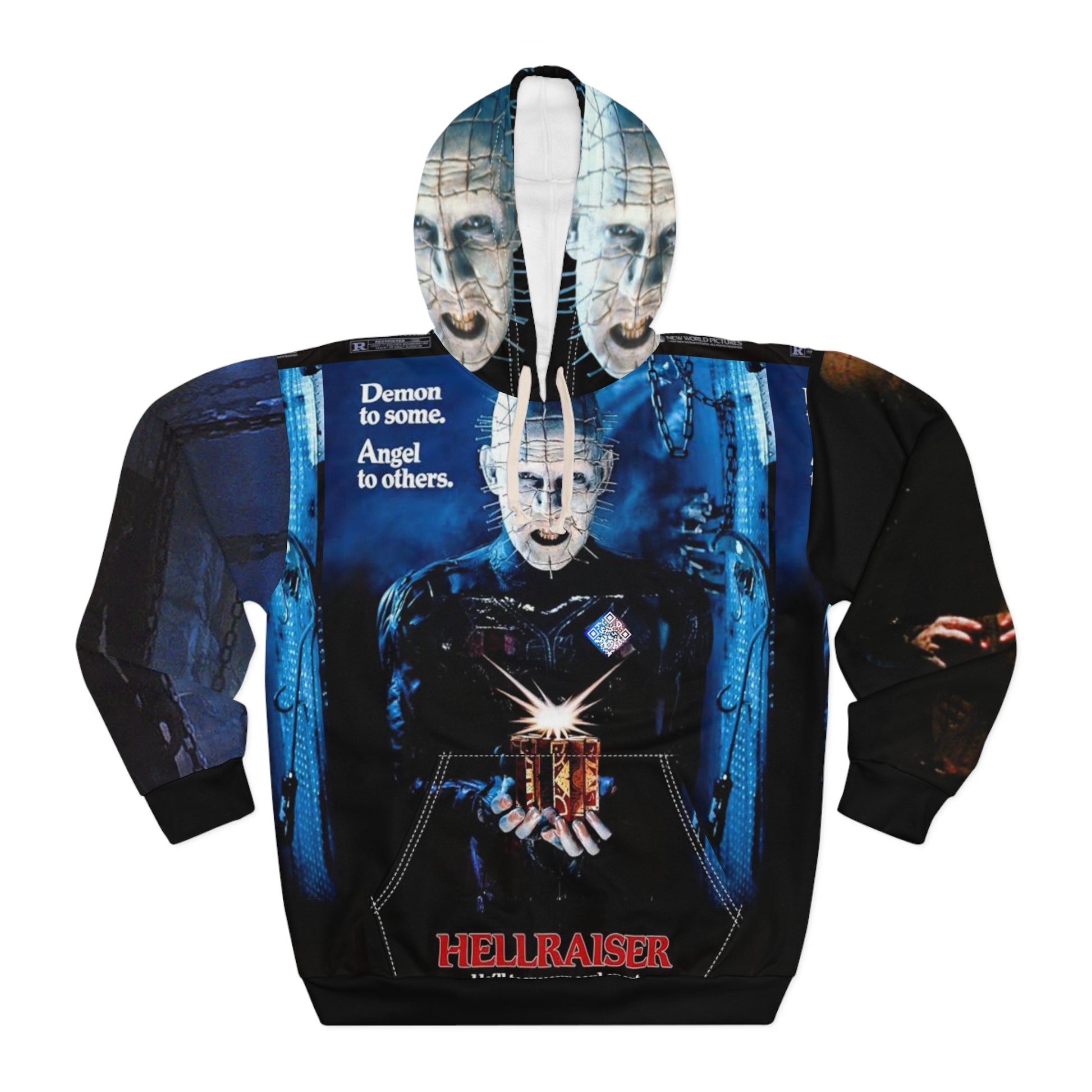 Hellraiser Tribute Digital Pullover Hoodie, Horror Movie Apparel, AOP Sweater, Gift for Fans, Halloween Outfit, Graphic Hoodie